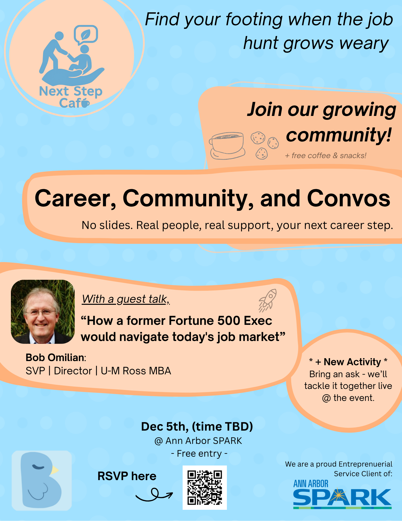 Next Step Cafe is a growing community of skilled, diverse folks helping each other expand our collective networks.